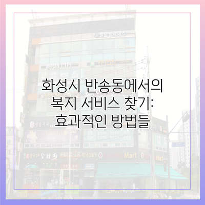 ✅ 내 복지 혜택을 빠르고 쉽게 찾는 방법을 알아보세요! 👉 복지 혜택 찾기 시작하기 화성시 반송동 복지 서비스의 개요 화성시 …