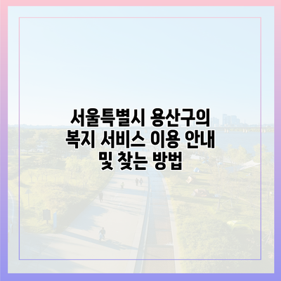 ✅ 내가 받을 수 있는 복지 혜택을 쉽게 찾아보세요! 👉 나의 복지 혜택 찾기 서울특별시 용산구 복지 서비스 개요 서울특별시 …