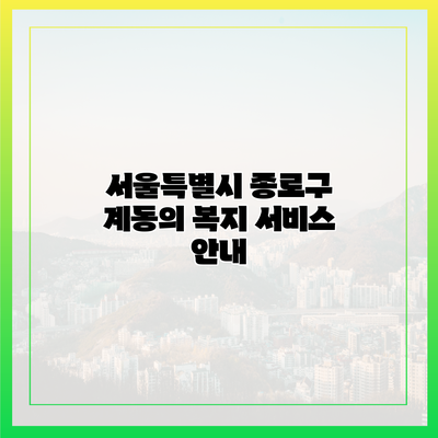 ✅ 서울 종로구의 다양한 복지 혜택을 알아보세요! 👉 종로구 복지 서비스 확인하기 서울특별시 종로구 계동의 복지 서비스 현황 서울특별시 종로구 …