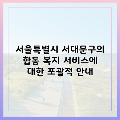 ✅ 서대문구에서 제공하는 복지 혜택을 한눈에 확인해보세요! 👉 서대 복지 혜택 알아보기 서대문구에서의 합동 복지 서비스 개요 서울특별시 서대문구에서는 다양한 …