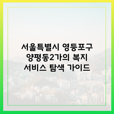 ✅ 정부 지원을 통해 내 복지를 쉽게 찾아보세요. 👉 내 복지 혜택 알아보기 서울특별시 영등포구 양평동2가의 복지 서비스 개요 서울특별시 …