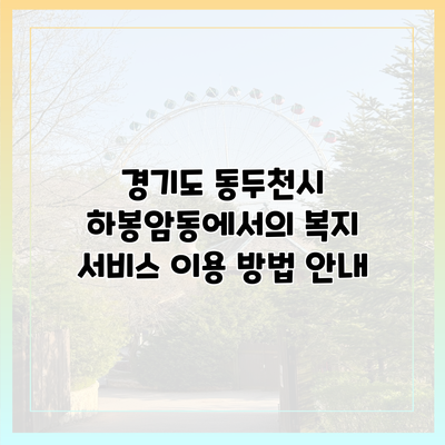 ✅ 나에게 맞는 복지 혜택을 쉽게 찾아보세요! 👉 내 복지 혜택 찾기 동두천시 하봉암동의 복지 서비스 개요 경기도 동두천시에 위치한 …